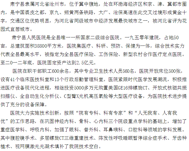 肅寧縣人民醫(yī)院簡介