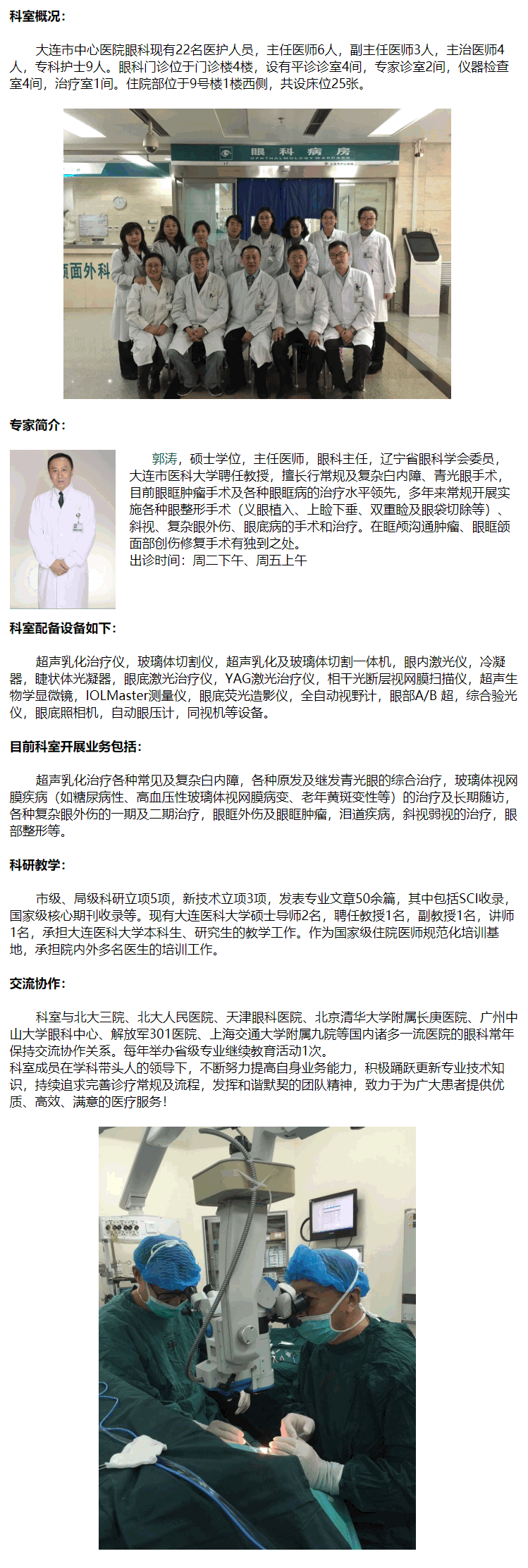 大連市中心醫(yī)院眼科簡介: